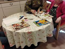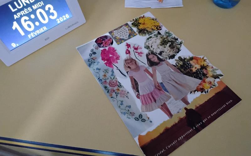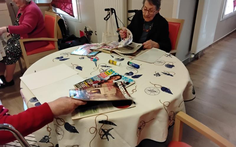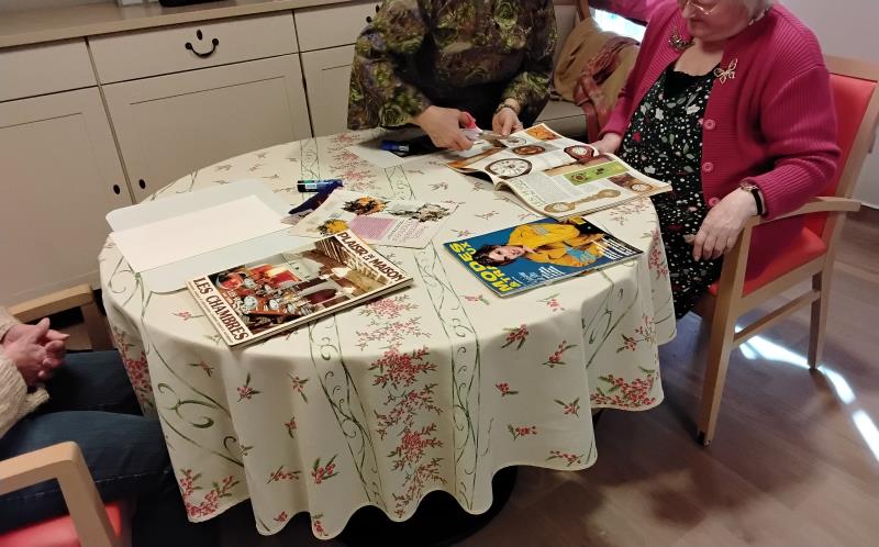 Accompagnés par Anne, assistante de soins en gérontologie, ils ont participé à une séance d’art‑thérapie animée par Évelyne, intervenante extérieure. Cette rencontre, proposée une fois par mois, est devenue un véritable rendez-vous attendu par les résidents.
