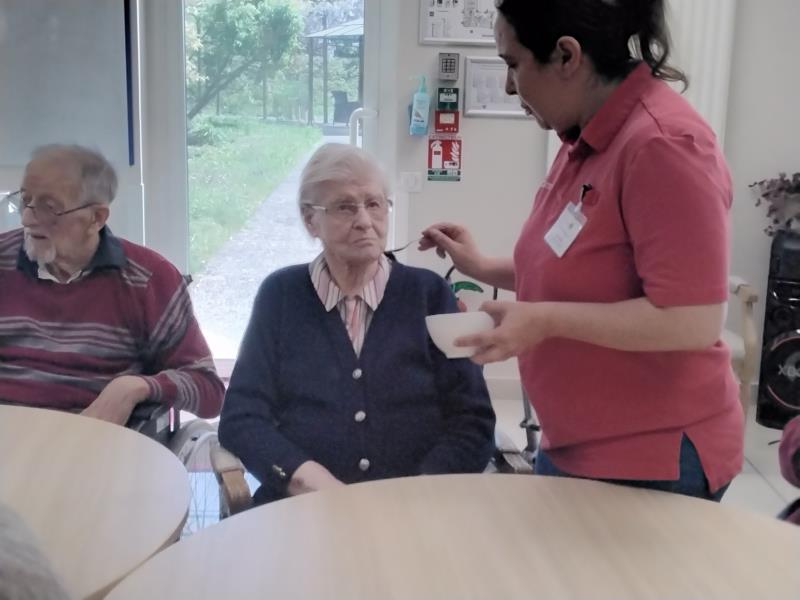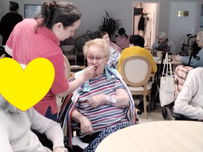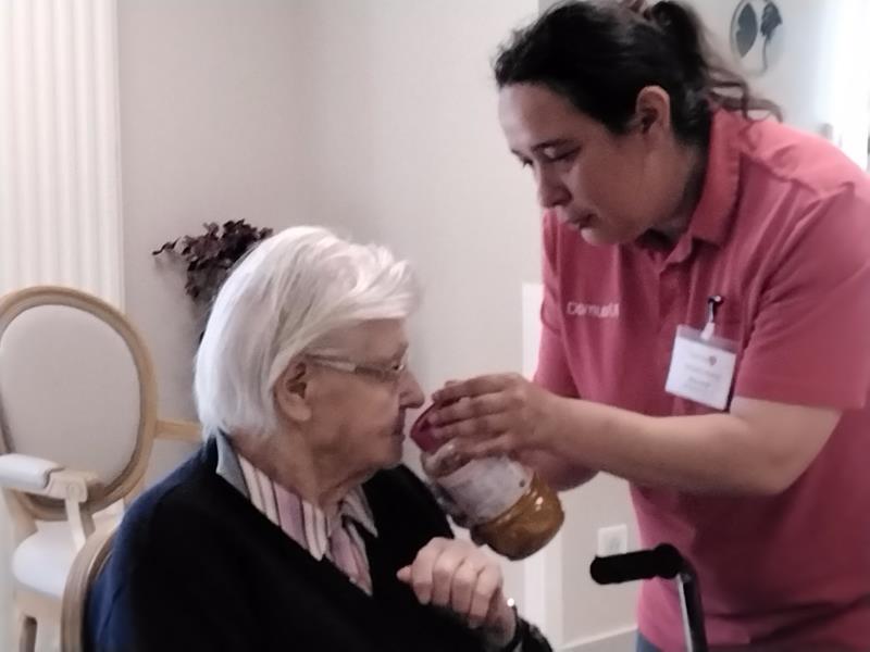Guidés par Cécile et Éloïse, les résidents ont pu explorer différentes saveurs grâce à une série de petits pots contenant des arômes variés. Chacun a pris plaisir à deviner le fruit, reconnaître une odeur familière, ou encore partager une anecdote liée à un parfum de leur enfance.
