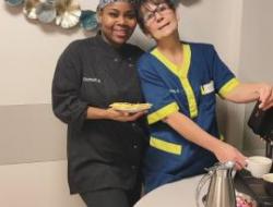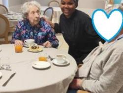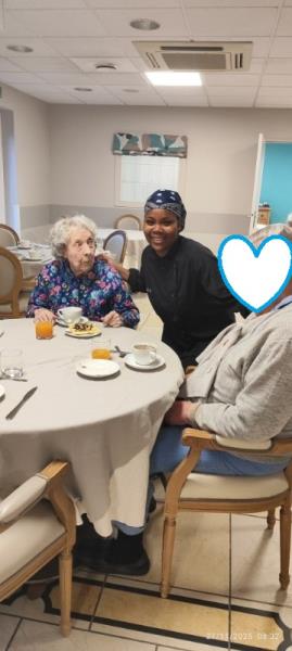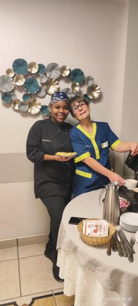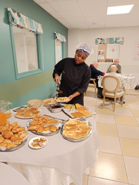 Daphné cheffe cuisine , Marie-Claude responsable hôtelière et Eloise animatrice , avons partagés un pur moment de bonheur entourés de nos personnes accompagnées lors de ce buffet bien gourmand .😋