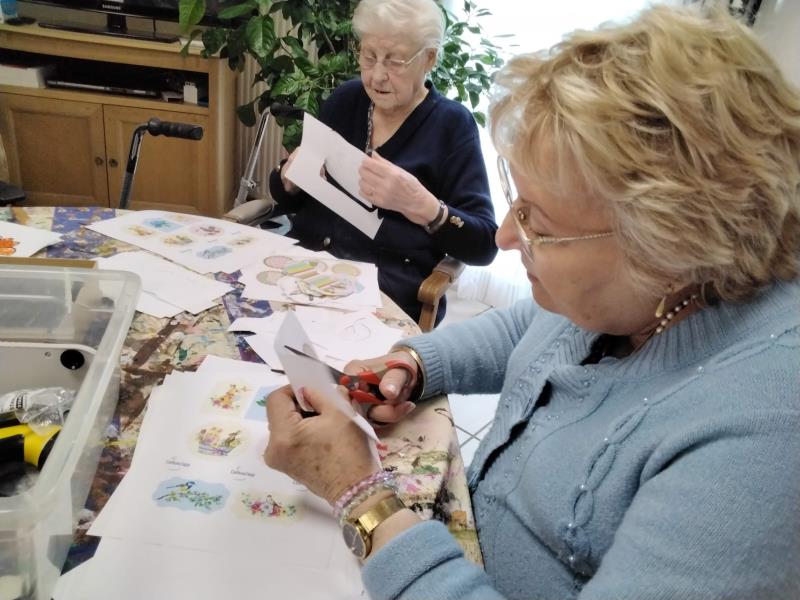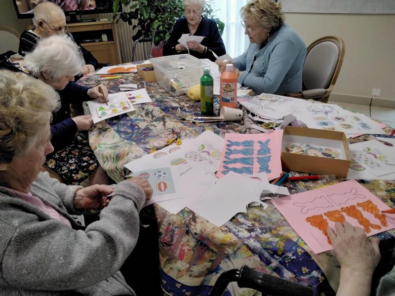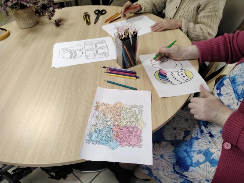 À l’EHPAD Les Jardins Médicis de Pontpoint, l’ambiance était douce et joyeuse cet après-midi. Anne, notre assistante de soins en gérontologie, et Éloïse, notre animatrice, ont accompagné les résidents dans la dernière étape de préparation des décorations de Pâques.
